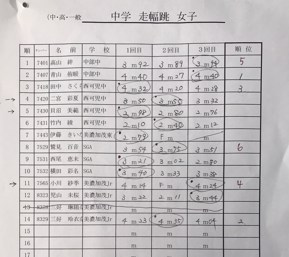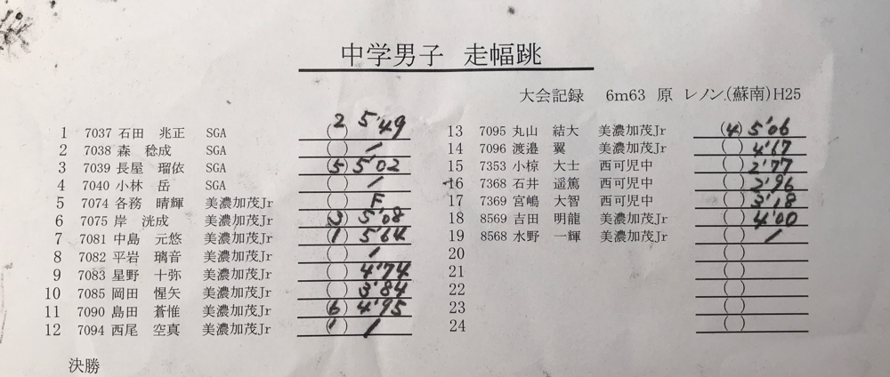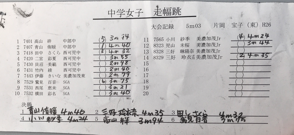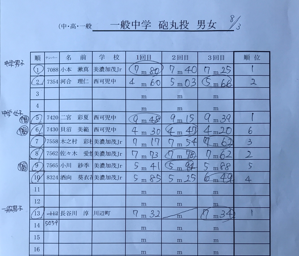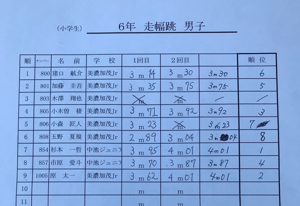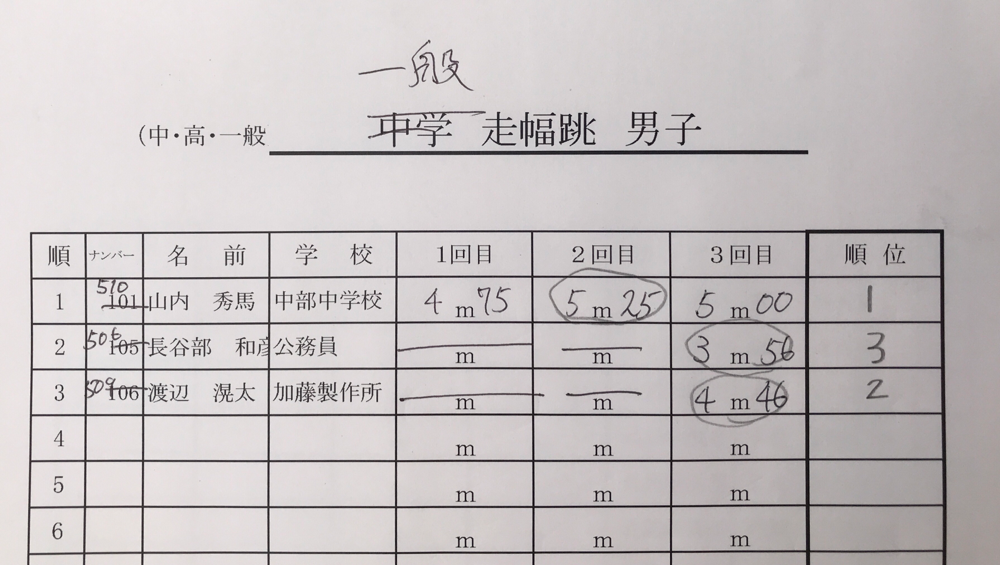 結果:フィールド種目