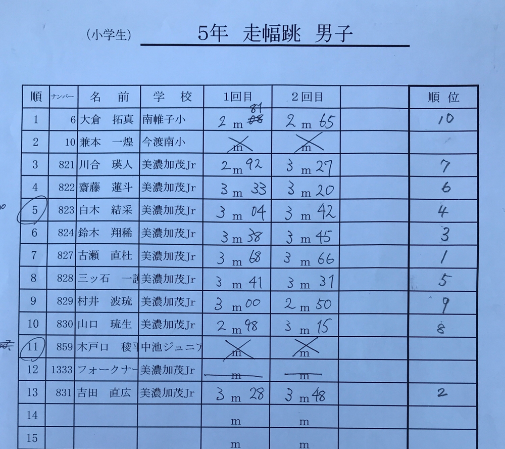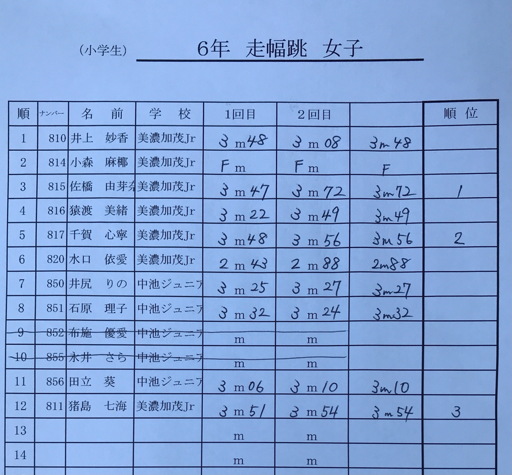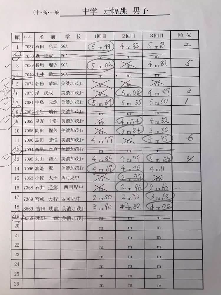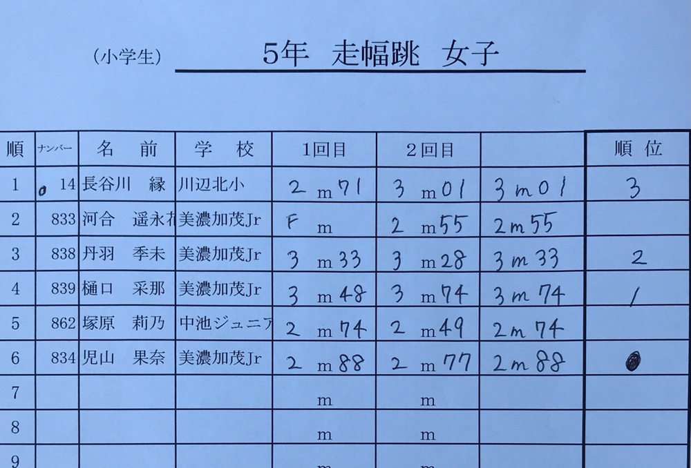 結果:フィールド種目